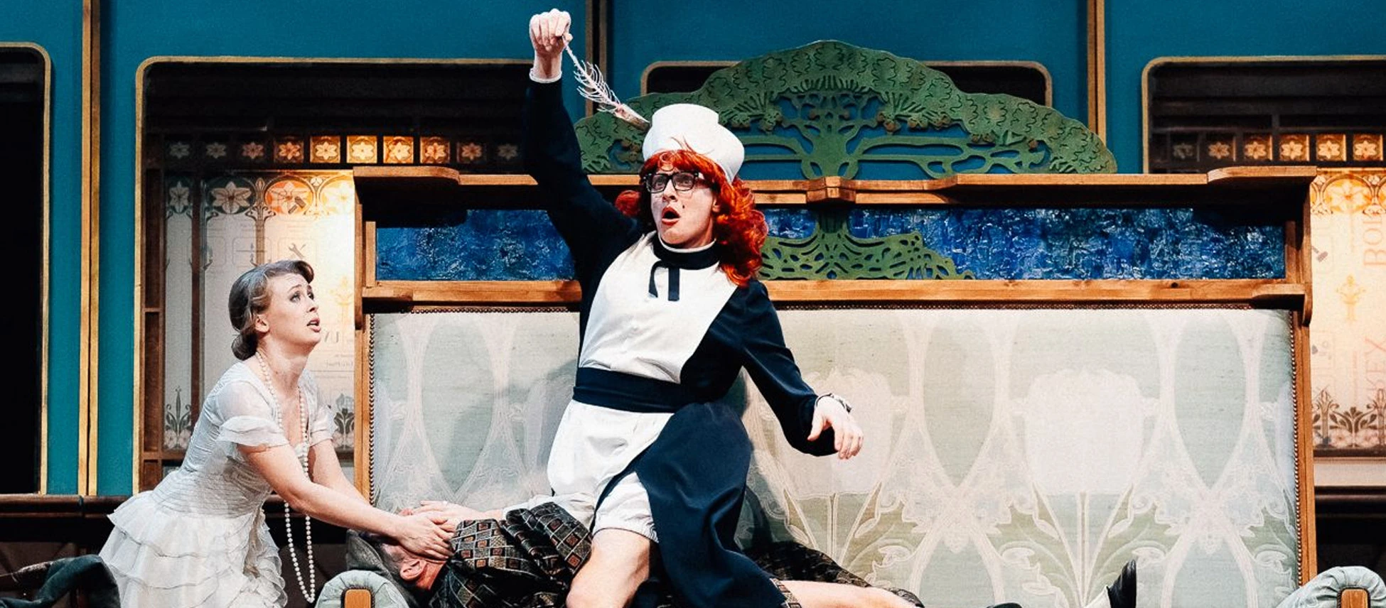 Комедия перед новогодними праздниками появляется в репертуаре «Красного факела» раз в два года — и вот как раз её время пришло. «Авантюристов» по пьесе Алена Вернье/ Владимира Глазкова поставили режиссёр Константин Колесник и художник Константин Соловьев.