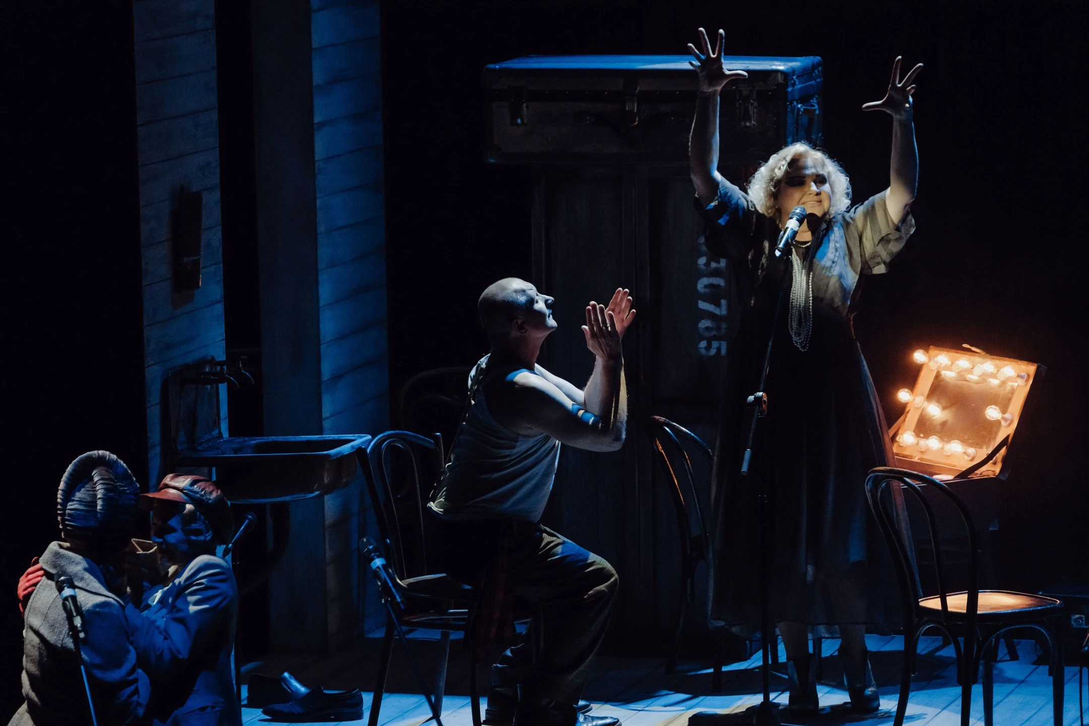 Но актеры бродячего театра не сдаются – под аккомпанемент живого оркестра они поют, ссорятся, любят, живут…