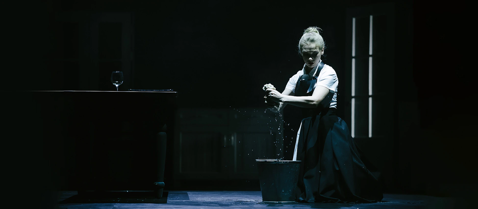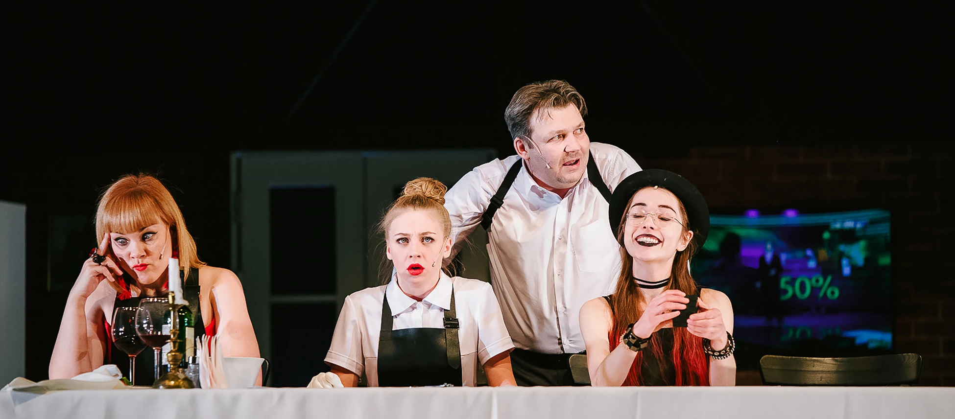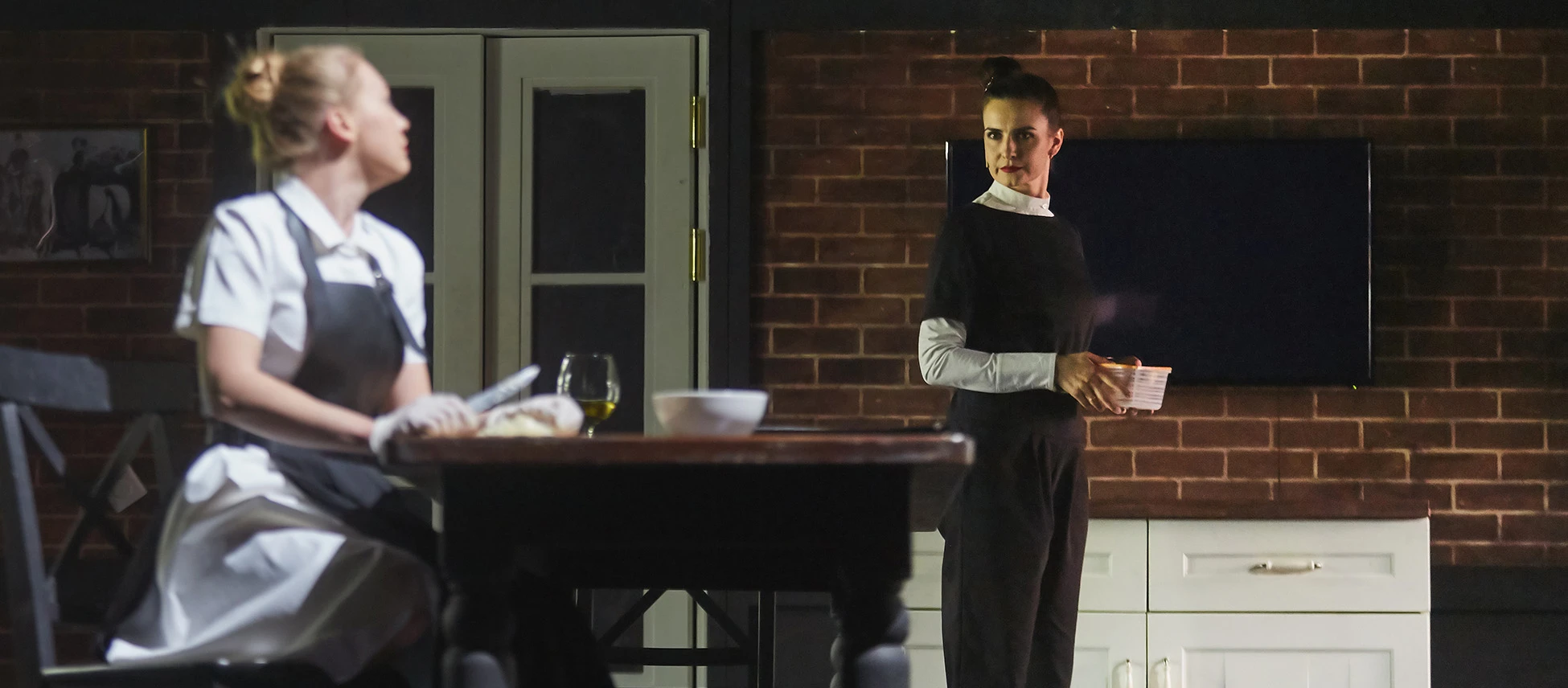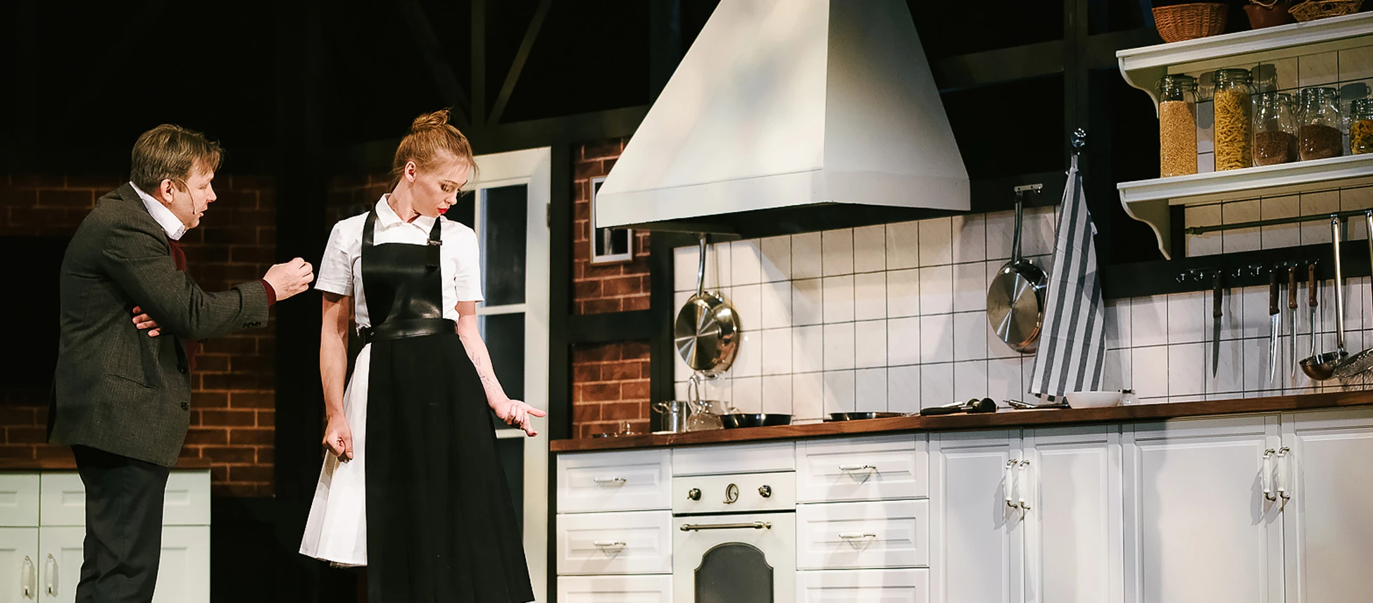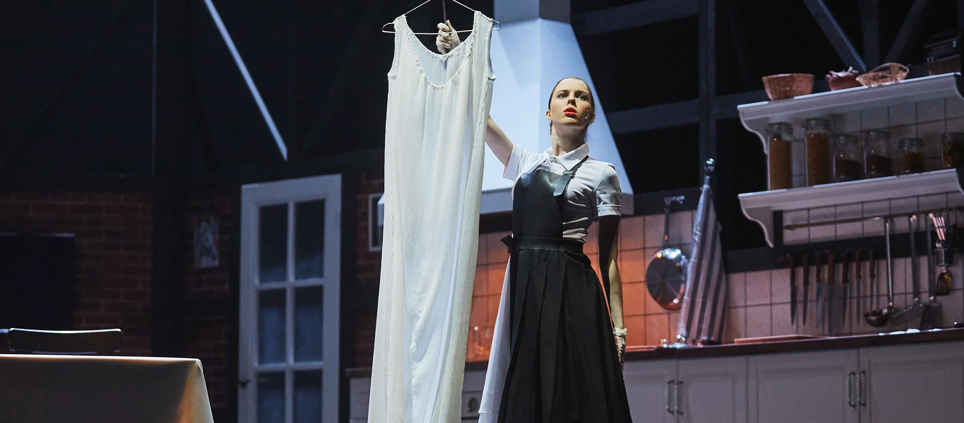 Всё действие происходит на кухне старинного особняка. Здесь жарятся самые настоящие стейки и одновременно ведется напряженное полицейское расследование. Спектакль получился красивым, стильным и смешным, как и обещал режиссёр спектакля Денис Азаров, который впервые сотрудничал с театром «Красный факел».