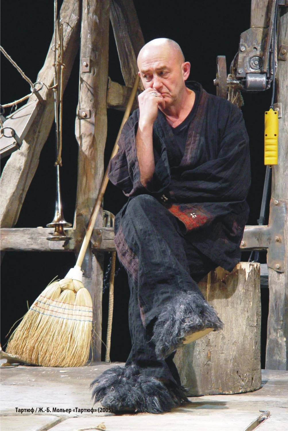 Режиссер Андрей Прикотенко предложил собственную интерпретацию «Тартюфа». Почему бы не вообразить, что психология мольеровских персонажей напрямую связана с обстановкой «гудящего многонаселенного улья»? Почему бы не представить, что эти обстоятельные и говорливые буржуа списаны с родственников Мольера? Что Оргон — владелец прибыльной мясной лавки в Париже? И именно в ней, на узком пространстве между роскошными деликатесами и мясными тушами, разворачивается основная интрига пьесы.